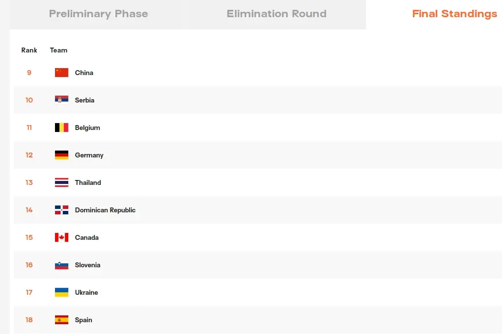 中国女排在本届世锦赛的最终排名随之出炉: